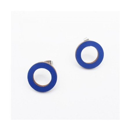 Circle Bleu earrings in wood and stainless steel: - height: 2.00 cm - width: 2.00 cm