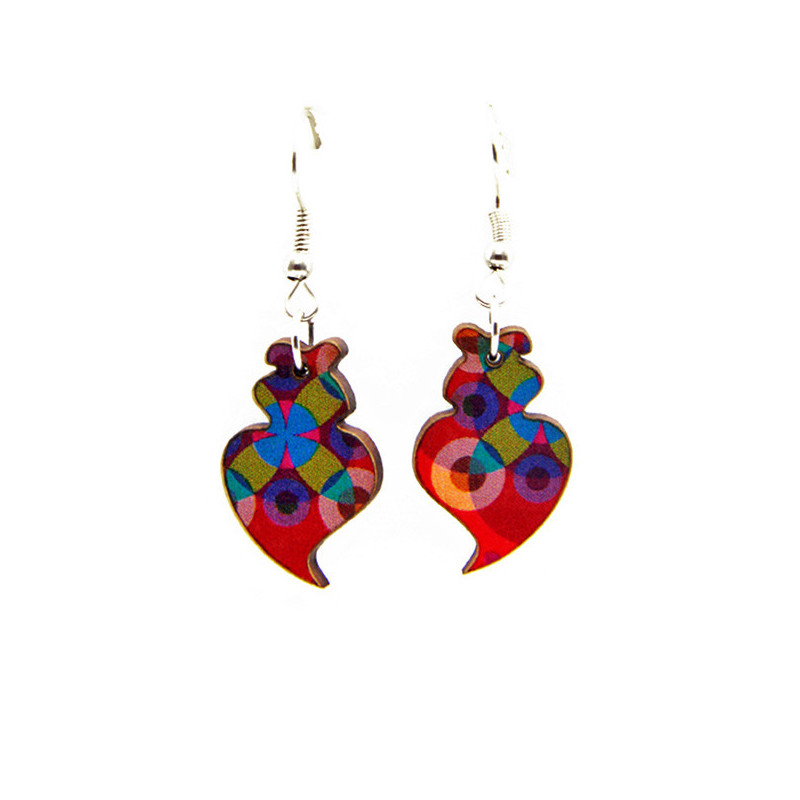 Viana Heart earrings in wood and stainless steel: