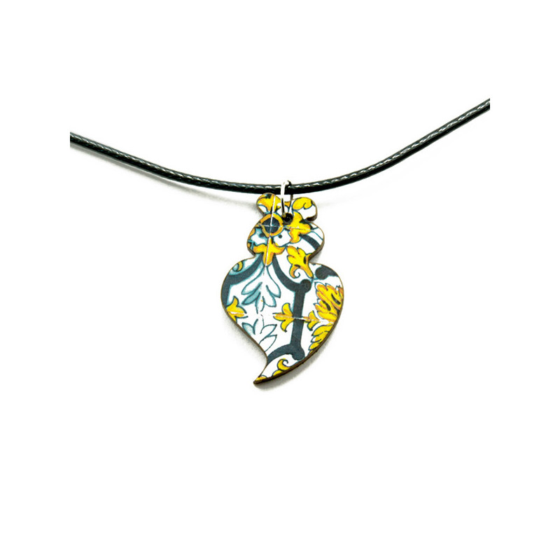 The Viana Heart is deeply rooted in Portuguese culture and is often given as a token of affection. Azulejos are a traditional art form in Portugal, used to decorate walls. Their colorful, geometric patterns often tell stories or depict scenes from everyday life. The pendant is made of wood, giving it a warm, natural look. It is decorated with red azulejo motifs, replicating traditional patterns. The pendant is shaped like the Viana Heart, with details reminiscent of azulejo motifs. The vibrant colors of the azulejos contrast with the wood, creating a striking visual effect. You can wear this Viana Heart necklace to show your attachment to Portuguese culture, a symbol of love and tradition, and add a touch of originality and color to an outfit.