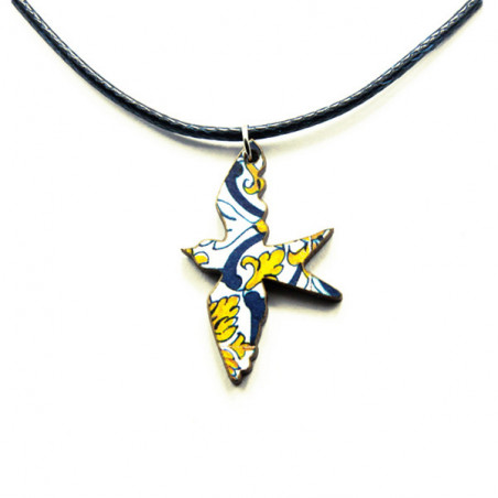 Not all pieces with a pattern may be exactly as pictured, as the pieces are cut using different parts of the design. To prolong the life of this azulejo swallow necklace, we recommend avoiding contact with water and chemicals.