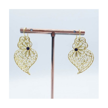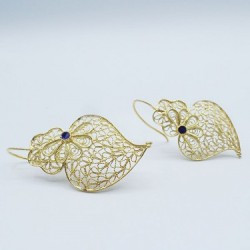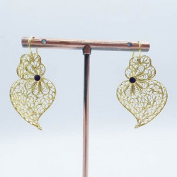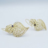 A very elegant pair of earrings in gold-colored silver, handcrafted in Portugal. Its filigree flower decoration gives it all its finesse and originality. Size: 40mm * 23mm * Weight: 9.40g Material: silver * Color: gold Designed by an artisanal workshop in Gondomar in the north of Portugal, a few kilometers from the city of Porto.