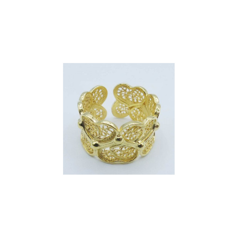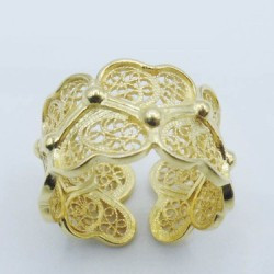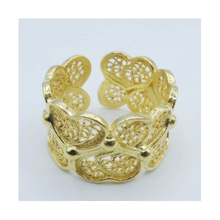 Weight: 9g Material: silver Color: gold Adjustable size; fits all finger sizes Width: 13mm Filigree is a very typical technique of Portuguese goldsmithing. In Portugal, filigree pieces dating from 2500-2000 BC have been found! Portuguese coins are recognized for their high quality.