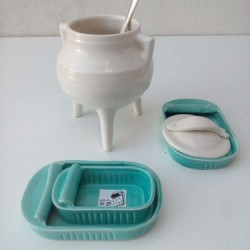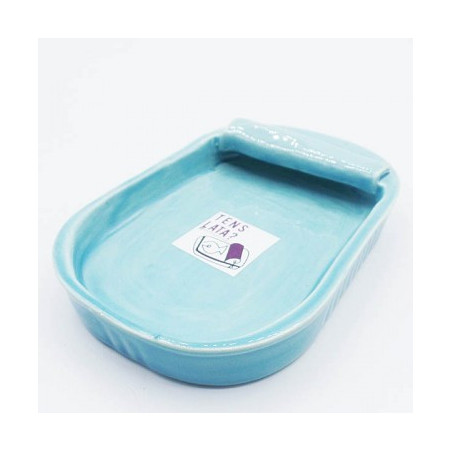 Artisanal ceramics, medium can of turquoise sardines. Length: 14.50 cm Width: 9.50 cm Height: 2 cm