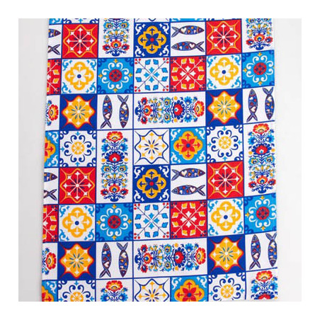 Beyond its enchanting aesthetic, this Azulejos Multicolor tea towel proves to be a valuable ally in your daily life. Its absorbent and durable fabric is ideal for drying dishes, cleaning countertops, or simply adding a touch of cheerfulness to your kitchen. It is both practical and decorative, transforming a mundane task into a moment of visual pleasure.