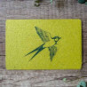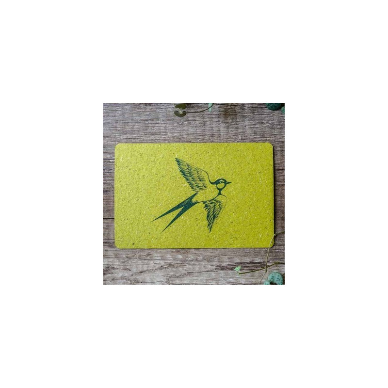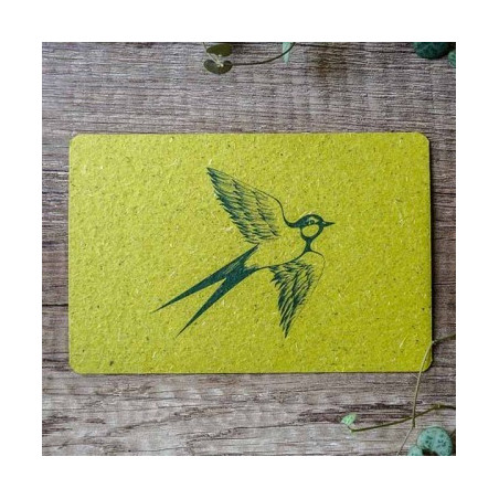 The size of this card is 10 cm x 15 cm. This green swallow card is made of 300g chlorophyll paper. Chlorophyll is a pigment present in green plants, this paper is ecological. In Portugal the swallow is associated with loyalty, fidelity and especially love. The swallow is a true emblem of Portuguese culture.