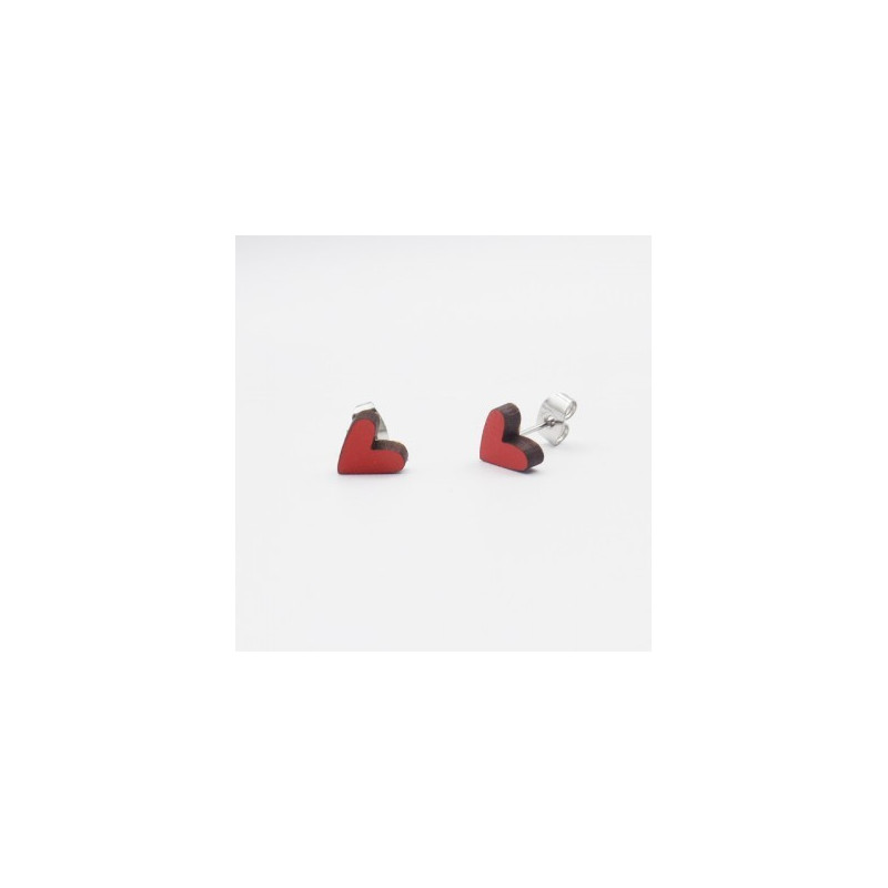 Boucles d'oreilles en bois Petit Coeur Rouge