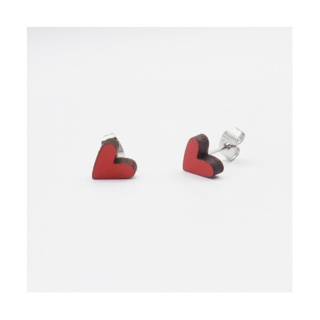 Boucles d'oreilles Petit Cœur Rouge en bois et acier inoxydable :