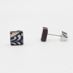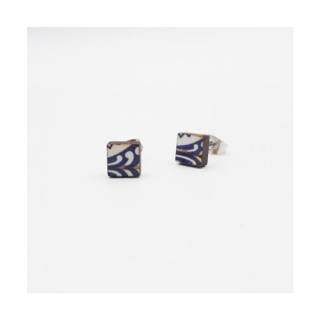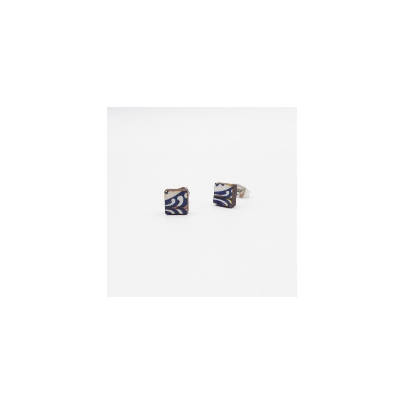 Boucles d'oreilles en bois Petit Carré Azulejos