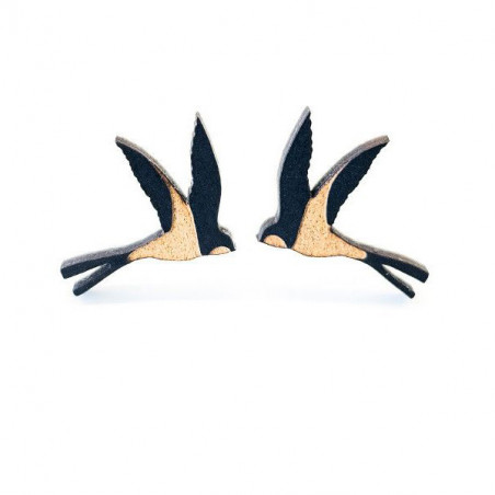 Boucles d'oreilles hirondelles en bois et acier inoxydable :
