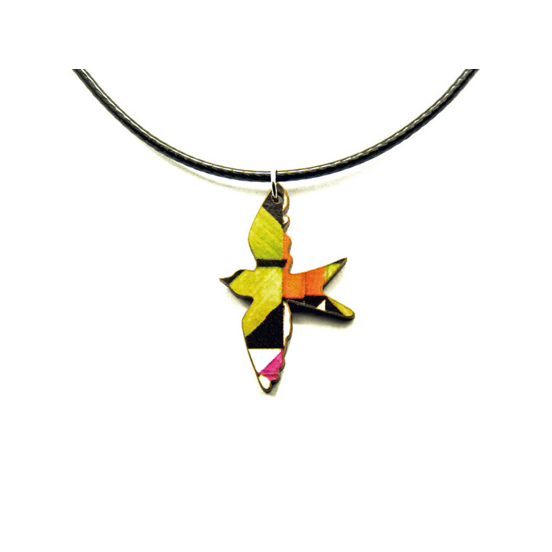 Collier hirondelle en bois et acier inoxydable :
