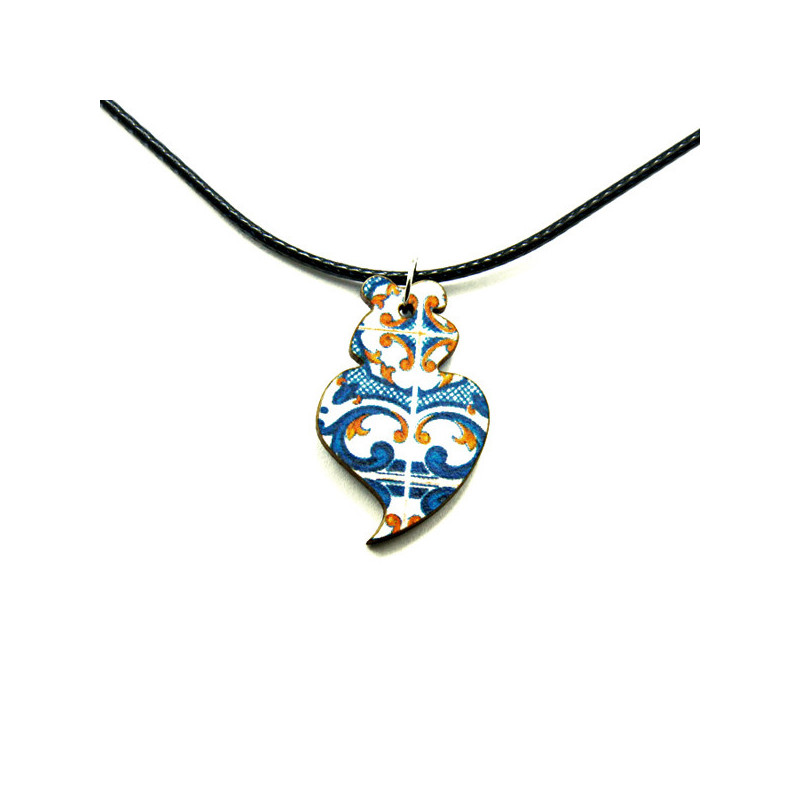 Ce collier en bois est un bijou qui célèbre à la fois le cœur de Viana, symbole emblématique du Portugal, et les azulejos, ces carreaux de faïence colorés qui ornent les façades des bâtiments portugais. Le cœur de Viana est un symbole, originaire de la ville de Viana do Castelo, représente l'amour, la dévotion et le courage.