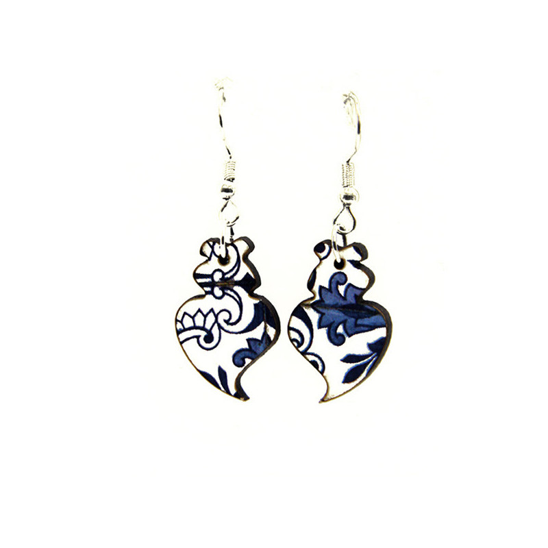 Les boucles d'oreilles pendantes Cœur de Viana azulejos  sont des bijoux qui marient la tradition portugaise avec une touche de couleur vive. Elles sont inspirées de deux symboles forts : le Cœur de Viana et les azulejos.