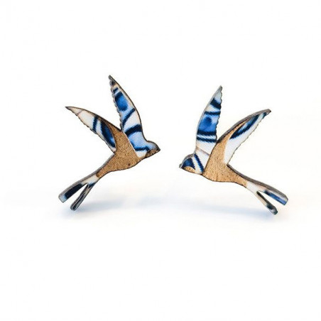 Boucles d'oreilles hirondelles en bois et acier inoxydable :