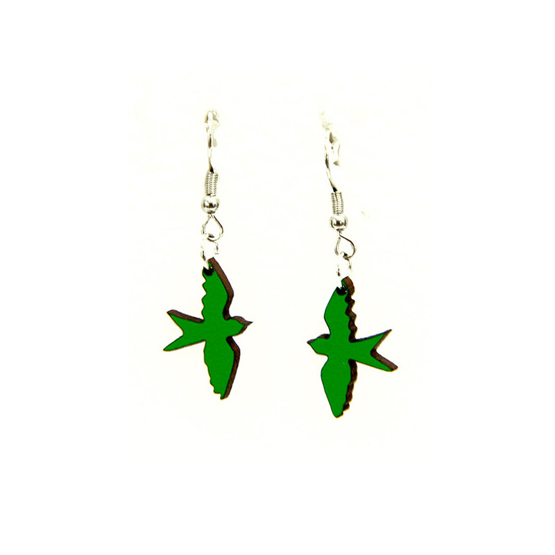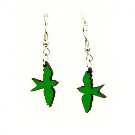 Boucles d'oreilles hirondelles en bois et acier inoxydable :