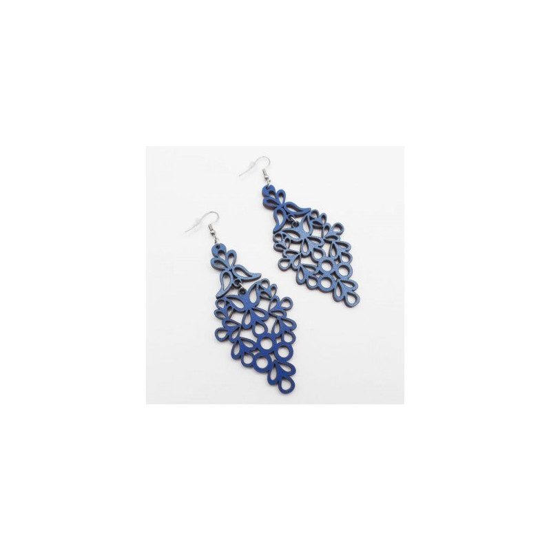 Boucles d'oreilles Vindima bleu en bois et acier inoxydable :- hauteur : 9,50 cm- largeur : 3,80 cm