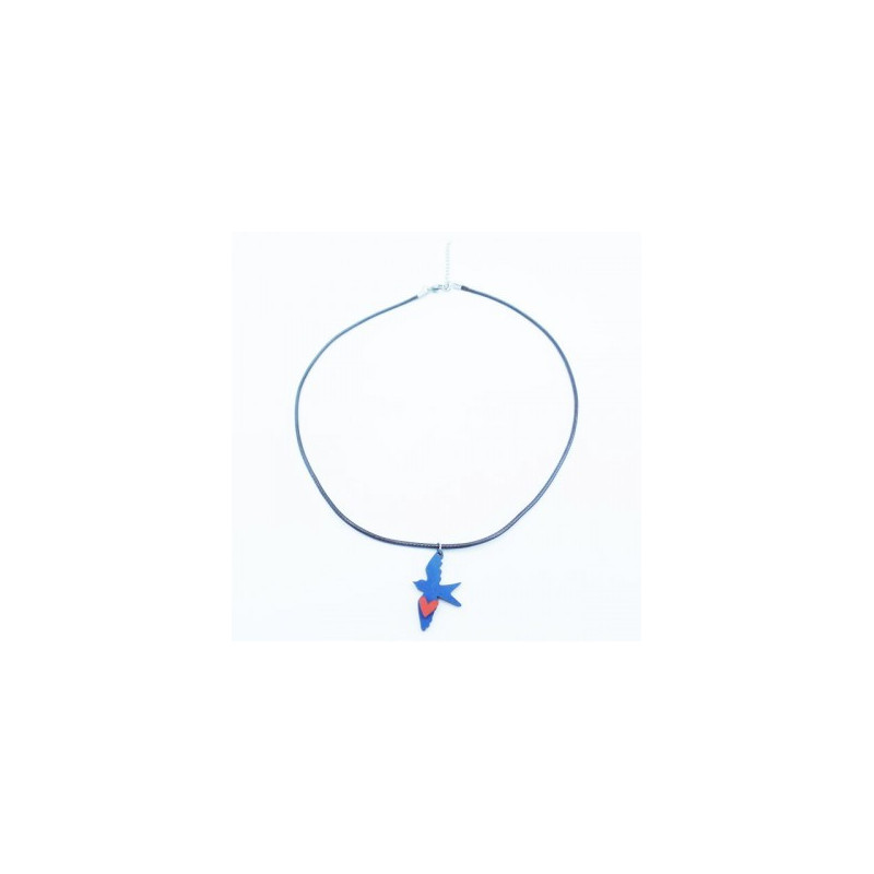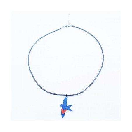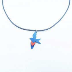 Collier Hirondelle Bleu en bois et acier inoxydable :