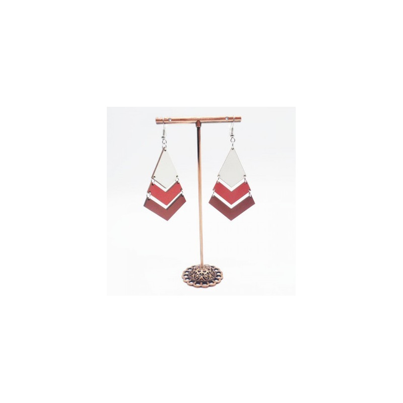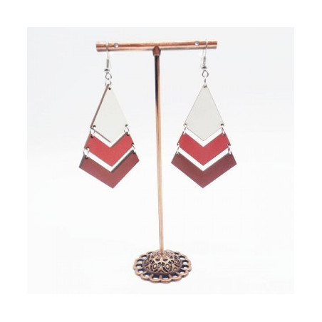 Boucles d'oreilles Rute Bordeaux en bois et acier inoxydable :