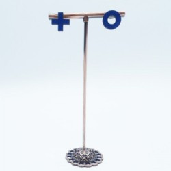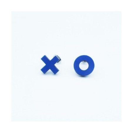Boucles d'oreilles Morpion (une croix et une ronde) Bleu en bois et acier inoxydable :