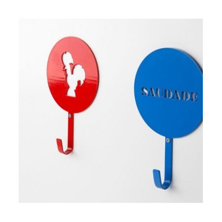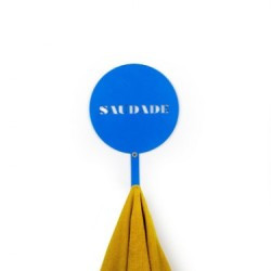 Porte-manteau murale en acier, laqué en bleu, avec le mot saudade. Il est facile à monter. Les vis ne sont pas incluses. 17 cm x 11 cm.