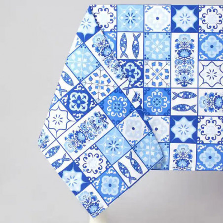 Confectionnée pour s'adapter à vos besoins, cette nappe rectangulaire Azulejos bleu 150x200 peut être réalisée en nappe en coton Azulejos Portugal pour un toucher naturel et agréable. Son aspect de nappe imprimée Azulejos de qualité supérieure insufflera une véritable nappe ambiance portugaise à vos repas, qu'ils soient quotidiens ou festifs.