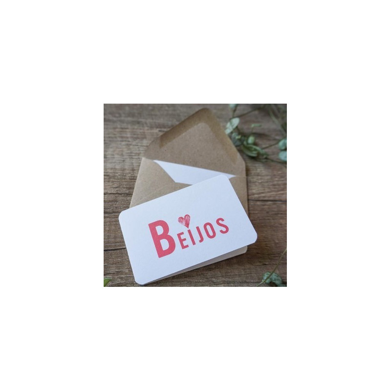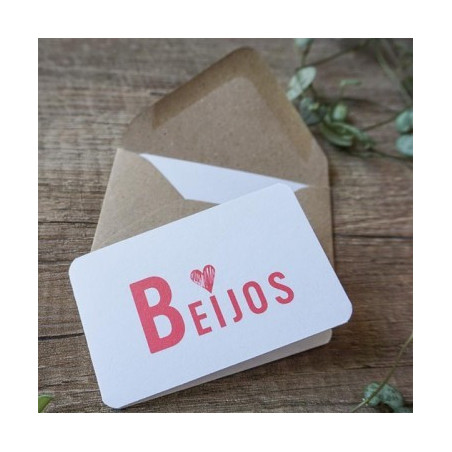 La taille de cette mini carte est de 8,50 cm x 5,40 cm, le message inscrit sur la mini-carte est "Obrigado", les bords sont arrondis, le papier Coton utilisé est de 300g, la mini enveloppe est en papier kraft.